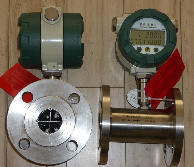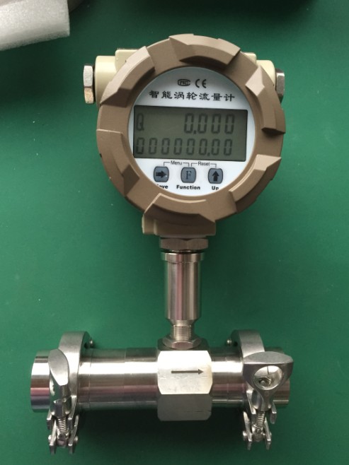 流量計在管道中心安放一個渦輪,兩端由軸承支撐。當流體通過管道時,沖擊渦輪葉片,對渦輪產(chǎn)生驅動力矩,使渦輪客服摩擦力矩和流體阻力矩而產(chǎn)生旋轉。渦輪的轉速通過裝在機殼外的傳感線圈來檢測,傳感線圈將檢測到的磁通變化信號送入前置放大器,產(chǎn)生于流速成正比的脈沖信號,送入單位換算與流量積算電路得到并顯示累計流量值和瞬時流量值。