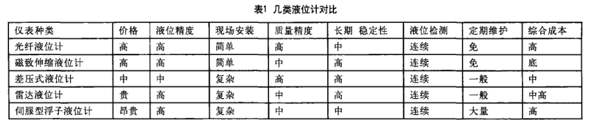 對(duì)市場(chǎng)中應(yīng)用較為**的幾類液位計(jì)綜合對(duì)比。