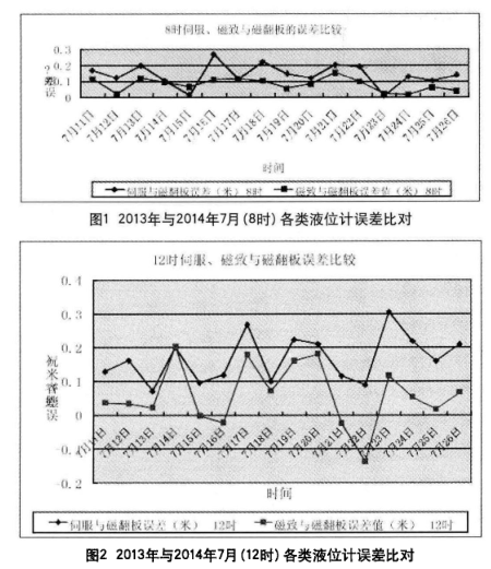 由以上兩圖得知,伺服液位計(jì)誤差值曲線較高,液位漲浮較大,計(jì)量誤差髙達(dá)+0.3m,而磁致液位計(jì)誤差值曲線相對(duì)穩(wěn)定,液位漲浮較小,計(jì)量誤差在±0.2m之間,較為**。