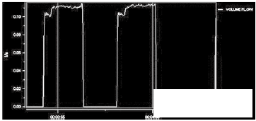 灌裝頭的終出口部分為10~14mm的可更換縮口。通過縮口,可以產生背壓,一般縮口內置蜂窩狀虹吸管,保證灌裝前后的管道滿管。從測試的流量波形上看,10mm的灌裝頭產生適當的阻尼效果,流量曲線較穩定。