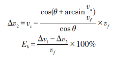 二次流水平速度(X 方向的分速度)直接影響了超聲波流量計(jì)的軸向檢測(cè)平面,對(duì)檢測(cè)造成了非常大的影響。聲道線在空間上先后收到方向相反的二次流水平速度的作用,這在很大程度上削弱了誤差。但反向速度并不完全相等,且超聲波流量計(jì)是按固定角度進(jìn)行速度折算的,超聲波傳播速度vs 對(duì)應(yīng)地固定為軸向流速為vd ,而其真實(shí)流速為vf ,由此二次流徑向兩個(gè)相反的水平速度,分別導(dǎo)致了Δv1(如圖4(a)所示)和Δv2(如圖4(b)所示)兩個(gè)速度變化量,其中Δv1 導(dǎo)致測(cè)得的流速偏大,Δv2 導(dǎo)致測(cè)得的流速偏小,兩個(gè)誤差不能抵消,產(chǎn)生二次流的水平誤差Eb :