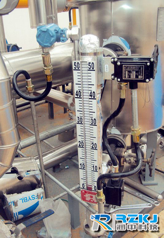 鑒于磁翻板液位計具有被測介質與指示機構完全隔離,密封性能好,防泄漏、適應腐蝕條件下的液位測量等優(yōu)點,且可靠性高、耐振性能好、結構簡單、安裝方便、維護費用低,現已在電力、石油、化工、冶金、環(huán)保、船舶、建筑、食品等行業(yè)得到**應用。本公司用戶上海某公司帶熱壓縮器低溫多效蒸餾海水淡化的濃鹽水、蒸餾水及冷凝水液位測量都采用帶遠傳的磁翻板液位計。為了防止結垢,需在低溫的情況下讓海水達到沸點,要求海水淡化裝置內部處于負壓狀態(tài),正常運行時為-0.093MPa左右,此為用戶磁翻板液位計使用須達到的工藝要求,以下說明即為儀表在負壓狀態(tài)下發(fā)生管路漏氣的典型故障分析情況。