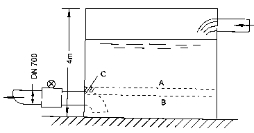 案例4 廣西某水廠在郊區山頭設置清水池,利用水池高度勢能發送成品水。運行人員反映計量出水量的DN700mm電磁流量計有時候流量顯示不穩。晃動達百分之十幾到百分之二十,誤差也大,估計相差約20%。現場考查發現水池如圖7-9所示安裝流量傳感器,水位高度不足就會卷入氣泡,甚至流量傳感器測量管內不能充滿。如水位降至A線時,雖高出吸入口**,但高出不多,還會在C處產生旋渦,將水位表面空氣卷入形成氣泡,使顯示晃動;若水位降到B,測量管將不滿管。我們建議如圖虛線所示裝一彎頭,擴大水池有效容量,減少吸入氣泡的機會,彌補原設計的不足。這類實例是經常遇到的。