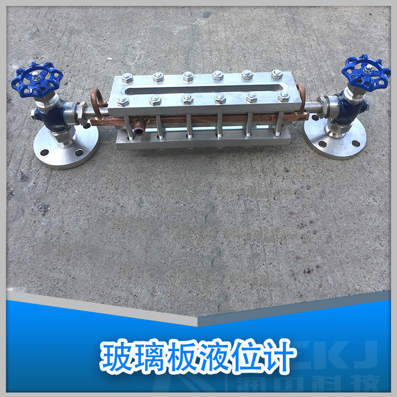 儀表的上下閥上裝有法蘭接頭,與容器連接構聯通器,透過玻璃板直接指示容器布什的液位,“夾套型”設有加熱或冷卻裝置。該裝置加熱時可用蒸氣,冷卻時可用循環水,這樣可以調節流動性能,夾套型接管尺寸ZG1/4內螺紋。在上下閥內裝有鋼球,當玻璃板因意外事故破壞時,鋼球在容器壓力作用下,自動密封,防止容器內的液體繼續外流。在儀表的上端針形閥裝有阻塞螺釘,可供放氣之用,下端針形閥也裝有阻塞螺釘。可供放空、取樣、排污、清洗。